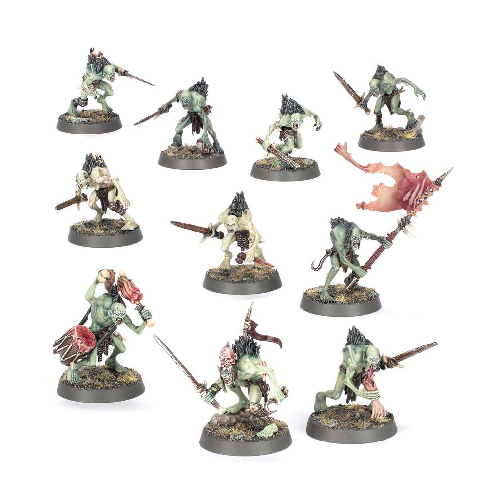 Ce kit contient de nombreuses options esthétiques pour vous aider à assembler une horde vraiment variée de goules féroces. Vous trouverez divers bras et armes alternatifs, ainsi que de nombreuses têtes interchangeables, toutes plus effrayantes les unes que les autres.