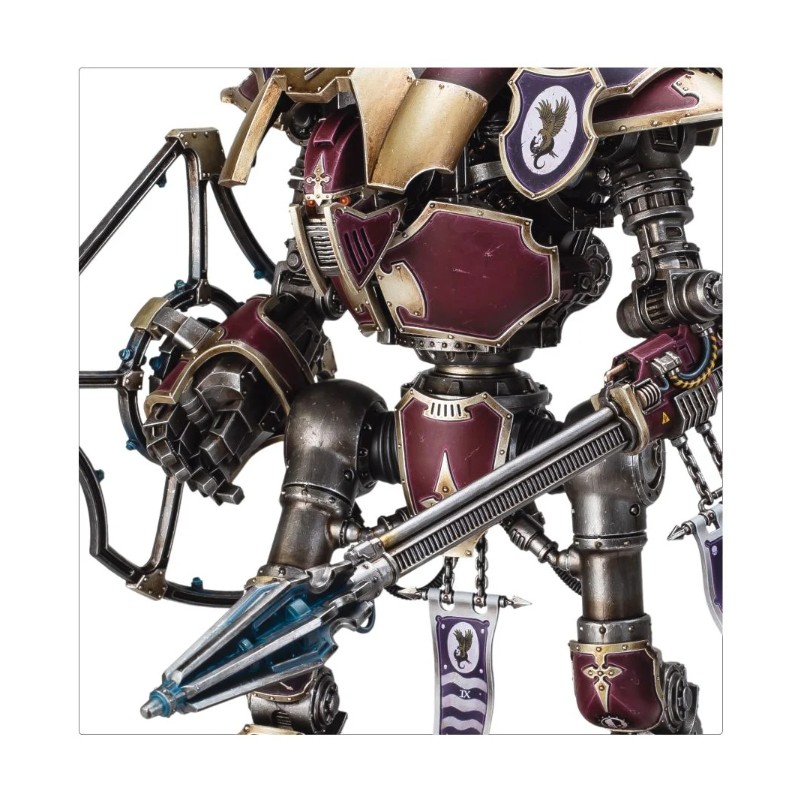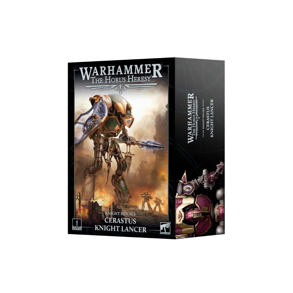 Ce kit plastique permet d'assembler un Chevalier Lancier Cerastus, un Chevalier rapide et agressif armé pour le combat rapproché. Plus grand encore que ses cousins de classe Questoris, le Chevalier Lancier possède de longues jambes qui lui permettent de traverser le champ de bataille en un clin d'œil. Il repousse les attaques avec son gantelet-bouclier ionique en se ruant en avant, déchaînant des tirs crépitants de sa colossale lance-choc montée sur son bras avant de charger pour empaler les menaces les plus imposantes.