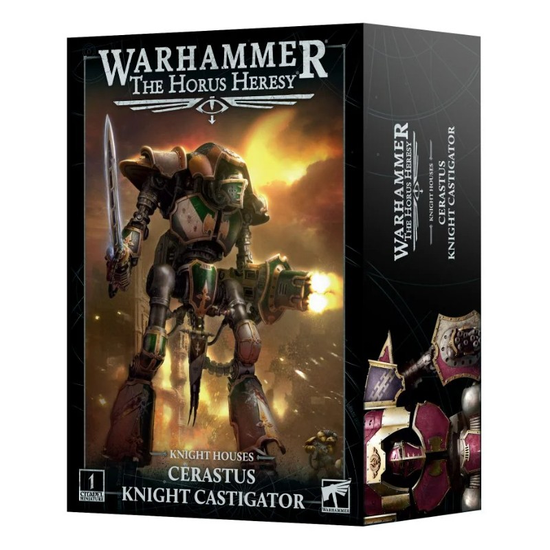 Ce kit plastique permet d'assembler un Chevalier Cerastus Castigateur, une noble machine de guerre qui dévaste l'ennemi à n'importe quelle distance. Plus grand encore que ses cousins de classe Questoris, le Chevalier Castigateur arpente le champ de bataille pour déchaîner un torrent rugissant de projectiles à l'aide de son canon à bolts monté sur le bras, puis de charger pour découper les blindés ennemis avec sa lame de guerre Tempest crépitante, aussi longue qu'un transport de troupes blindé Rhino.