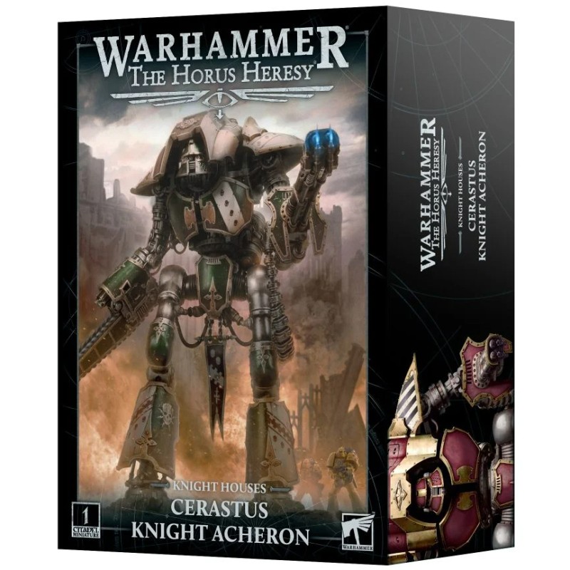 Ce kit plastique permet d'assembler un Chevalier Cerastus Achéron, une terrifiante machine de guerre qui réduit toute opposition en cendres. Plus grand encore que ses cousins de classe Questoris, le Chevalier Achéron arpente le champ de bataille en déchaînant des déluges de flammes funestes à l'aide de son canon Flamestorm monté sur le bras et en découpant les ennemis les plus résistants à coups de son cruel poing tronçonneur Reaper.
