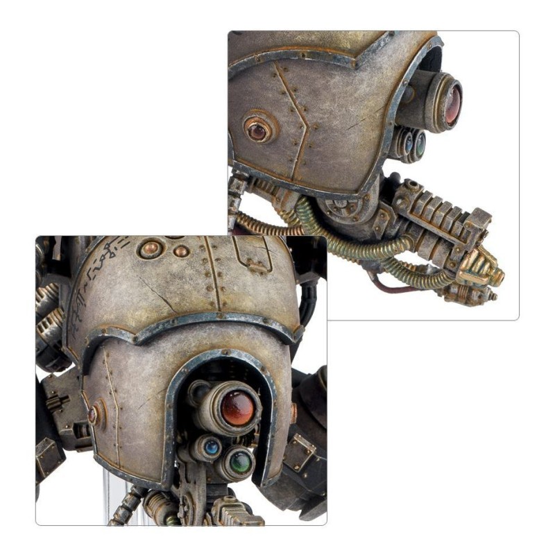 Description du produitLa forme la plus commune de stratos-automate largement utilisée par le Mechanicum Taghmata, le Vultarax est un engin de guerre robuste et multirôle inspiré d'anciens modèles de STC préimpériaux. Lourdement armé, doté d'un équipement sensoriel sophistiqué et capable d'opérer dans des environnements divers et hostiles, il sert de clé de voûte aux forces expéditionnaires de l'Explorateur - à la fois comme éclaireur armé à grande mobilité et comme unité de réponse rapide dans les batailles ouvertes.