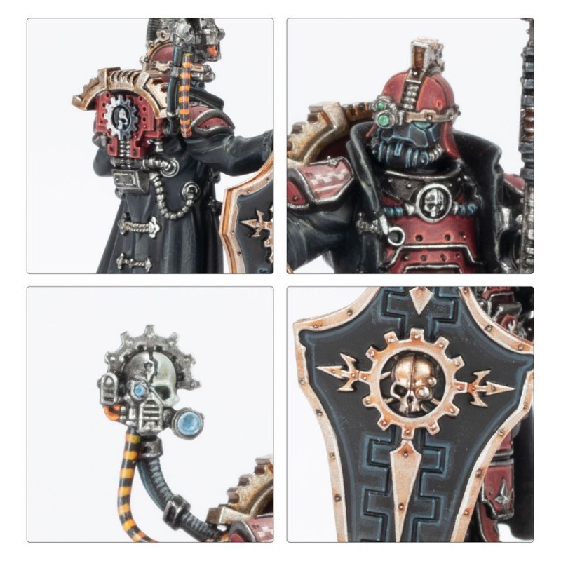 Description du produitLes Axiarques Secutarius sont des officiers de terrain qui prennent souvent le contrôle tactique de forces plus imposantes. Ils ont été presque entièrement reconstruits et il ne reste en eux plus grand-chose de l'être vivant qu'ils ont été. Ce sont des soldats à la résistance inhumaine, bâtis à l'image des machines divines qu'ils ont la charge de protéger, aussi bien de par leur corps mécanique que par leur psyché submergée par l'esprit de la machine.