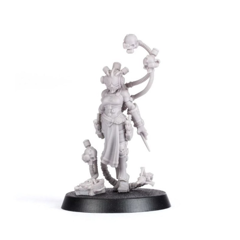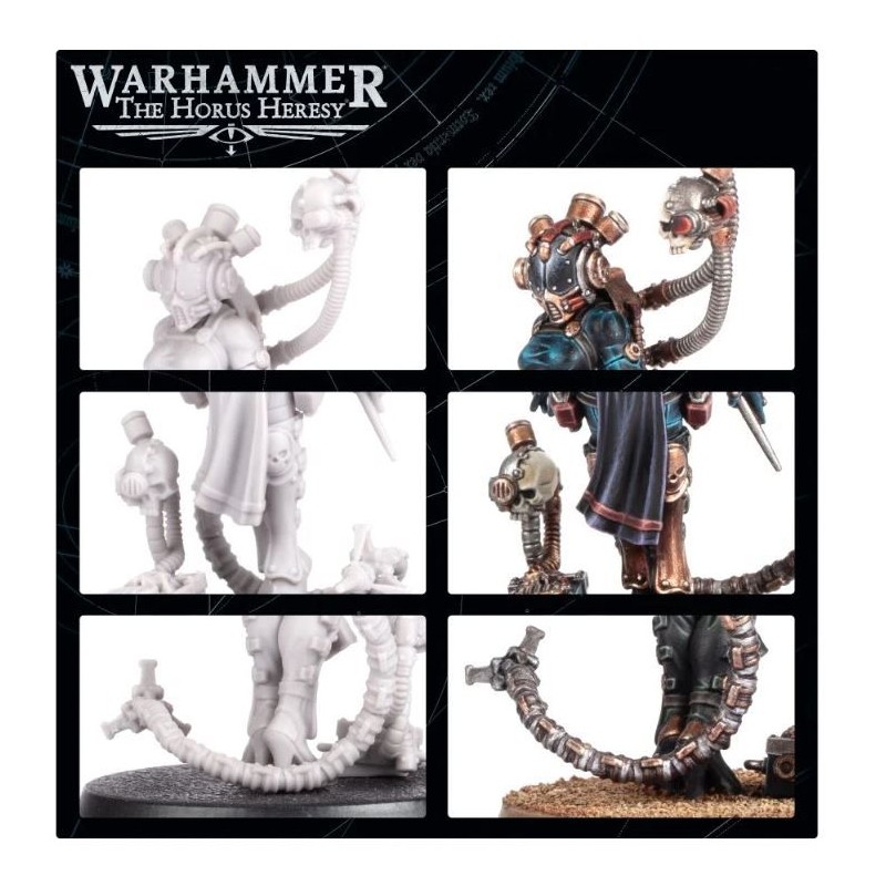 Ce kit en résine en plusieurs parties permet de construire un Clade Vanus Infocyte Assassin, un agent de l'Assassinorum au service du Régent impérial. Vêtu d'un gant de corps pour les opérations furtives, la tête de cet agent est encastrée dans un casque sans visage, équipé de capteurs qui filtrent les vagues d'informations du champ de bataille. Leur harnais supporte un ensemble sinueux de servo-limbes autonomes, avec un réseau de disrupteurs vox monté sur le crâne à côté d'eux. Des laspistols jumeaux sont suspendus à leurs côtés pour le tir à courte distance, tandis que chaque poignet comporte une pique de données sympatique dissimulée - l'une d'elles pouvant être sortie pour frapper.