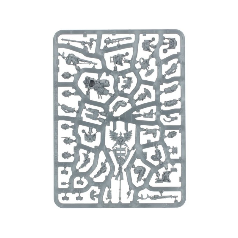 Cet kit très polyvalent permet autrement d'assembler une Section d'État-major de Ligne de rang moindre, portant des armures moins décorées et un vexillum plus modeste. Ce kit peut sinon être assemblé comme un Maréchal Légat accompagné de quatre Protecteurs. Vous trouverez encore plus d'armes pour le Maréchal Légat: une serpentine volkite, un pistolet Inferno ou un pistolet archéotech, et un marteau Thunder ou une lame de Parangon. Les Protecteurs peuvent recevoir l'équipement en surplus de leur seigneur!