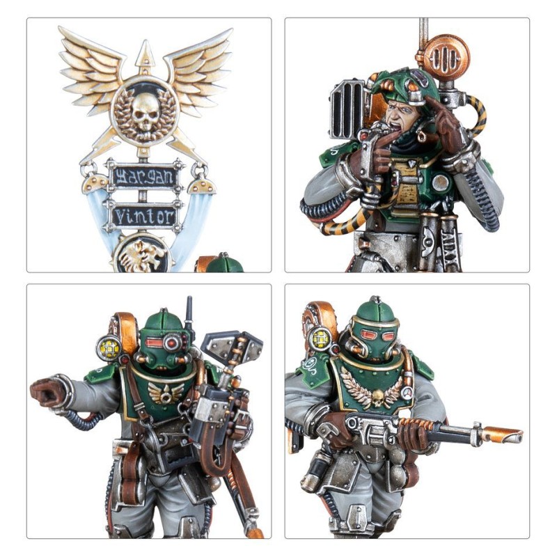 - Personnalisez votre unité avec des améliorations dont un vox d'état-major, un scanner augure, une bannière vexillum et bien plus