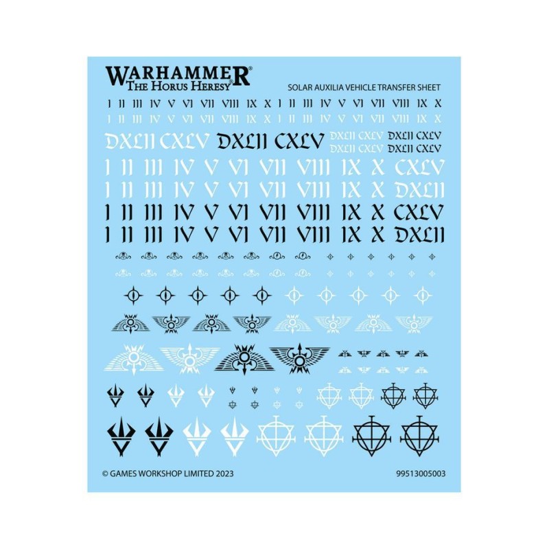 Ce kit est composé de 75 éléments en plastique, d'un Socle Rond Citadel de 80mm et d'une Planche de Décalcos de Véhicule des Solar Auxilia proposant 180 décalcos de grande qualité. Cette figurine est fournie non peinte et nécessite assemblage.