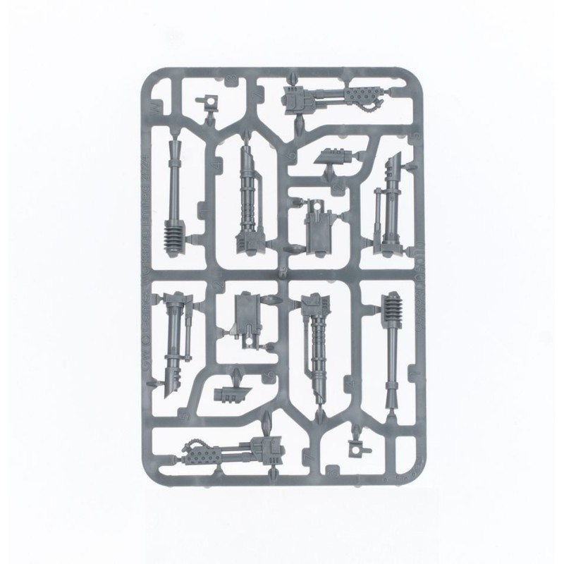 Le kit contient assez d'éléments pour améliorer votre Char Lourd Malcador avec un missile traqueur, un bouclier répulsif et une lame de bulldozer. L'écoutille de tourelle peut être assemblée avec des portes fermées ou ouvertes pour accuellir un artilleur des Solar Auxilia avec une arme sur pivot: un lance-flammes lourd, un multi-laser ou une mitrailleuse. Vous trouverez également de nombreuses options esthétiques, comme des symboles, des plaques de blindage, un observateur, et un choix de deux têtes d'équipage.