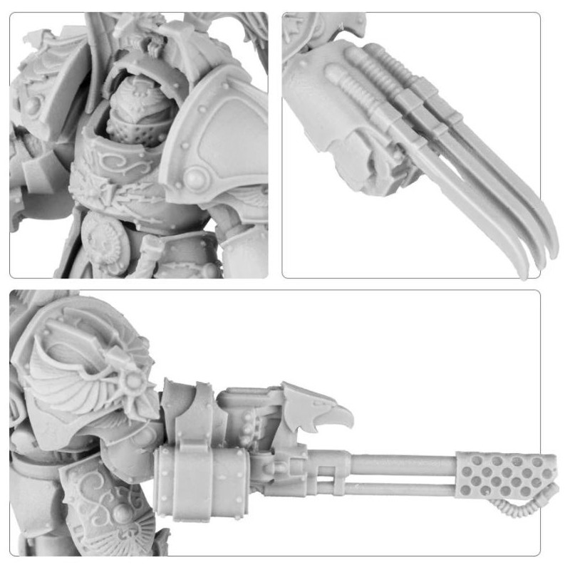 Ce kit de résine en plusieurs parties contient les composants nécessaires pour assembler 3 Legio Custodes Aquilon Terminators avec Infernus Firepikes.