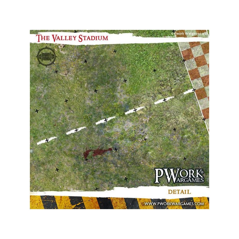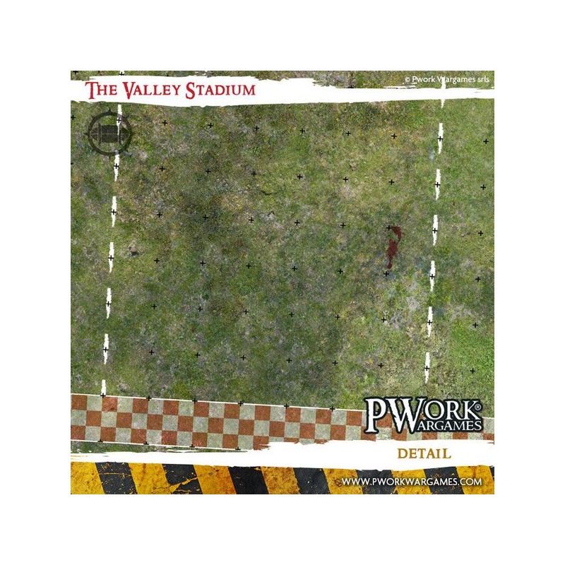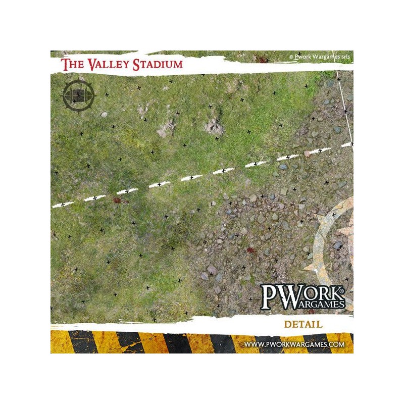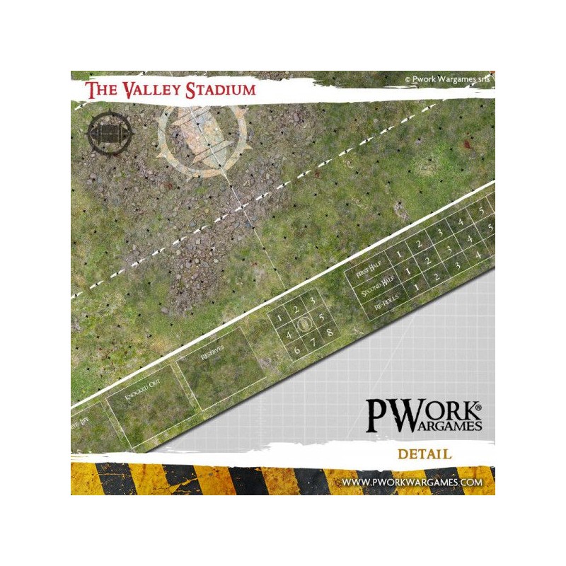 Compatible avec Blood Bowl 5th Edition, il représente un terrain de football avec des lignes quadrillées dans de grands espaces, des chemins poussiéreux et des rochers érodés par le vent.