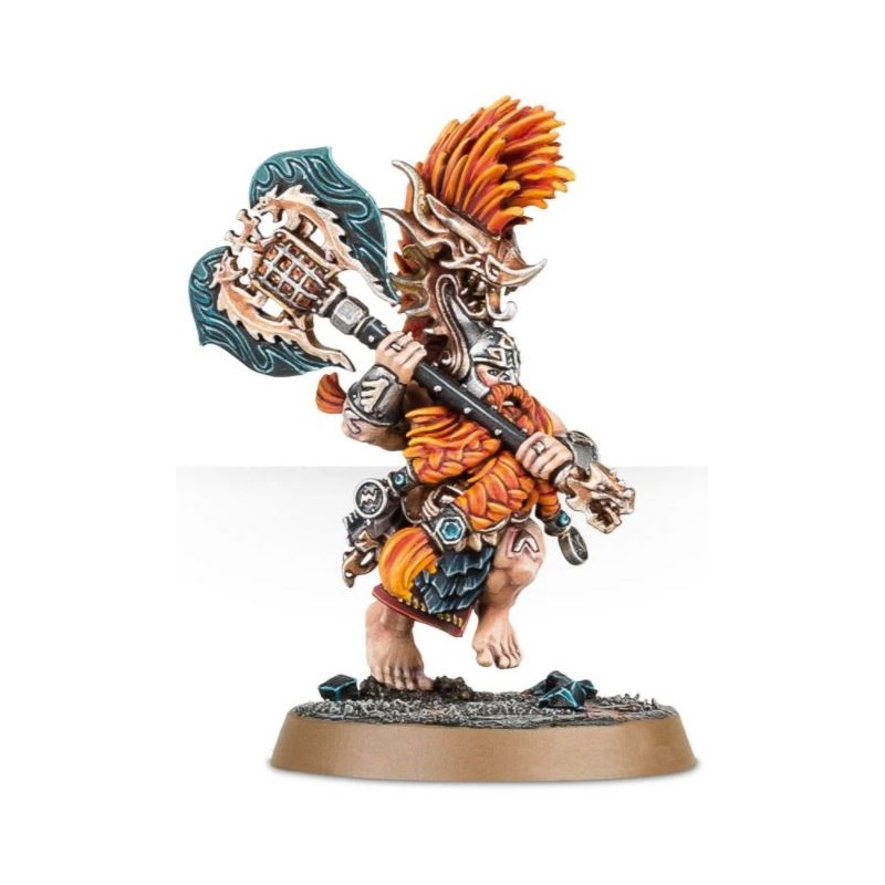 Ce kit plastique contient tout le nécessaire pour monter un Grimwrath Berzerker monopose, guerrier irrésistible des loges Fyreslayer. Armé d'une grand-hache tempête-de-feu et de haches de jet de pyracier, il a fière allure, avec sa crête immense et sa peau ornée de nombreuses runes d'ur-or, d'autant qu'il a la barbe la plus fournie entre tous les Fyreslayers! Douze pièces en tout, plus un socle rond Citadel de 32mm.