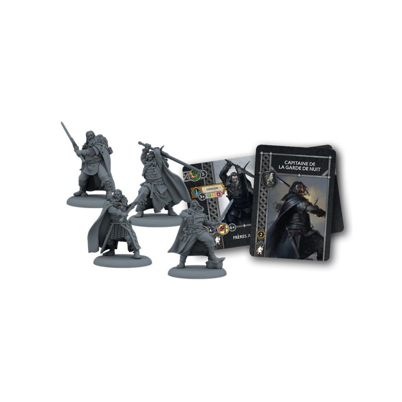 Description du produitLes forces de la Garde de Nuit peuvent être aussi bien composées d’appelés que de criminels et autres racailles. Toutefois, une fois qu’ils prennent le Noir, tous deviennent des Frères Jurés, appelés à défendre le Mur contre toute incursion. Au cœur de la bataille, les Frères Jurés sont capables d’affronter de terribles ennemis et de porter des attaques dévastatrices à l’aide de leurs grandes épées. Ils représentent les piliers de la Garde de Nuit, sur lesquels s’appuient d’autres unités plus spécialisées. Un général avisé saura éviter que les Frères Jurés se retrouvent encerclés ou pris de flanc et s’assurera que ses unités plus spécifiques puissent trouver refuge derrière leurs rangs.
