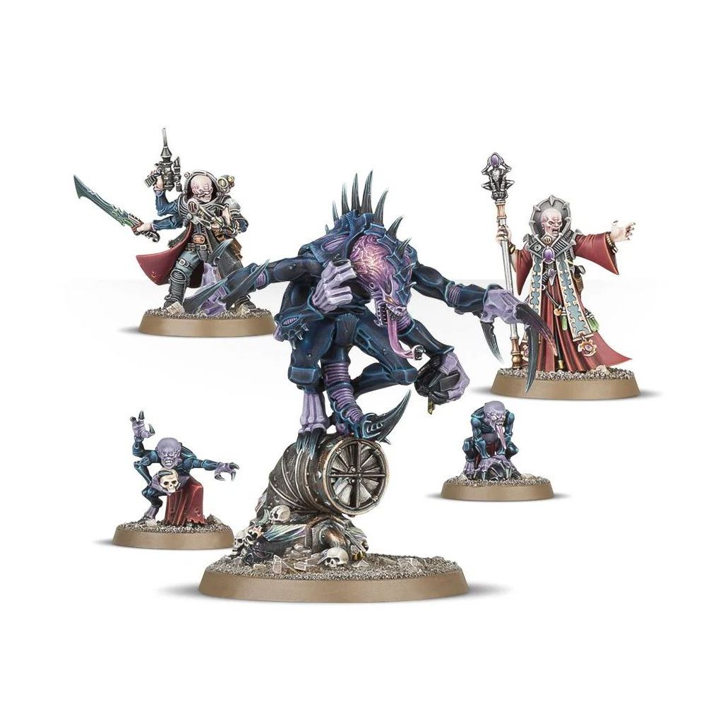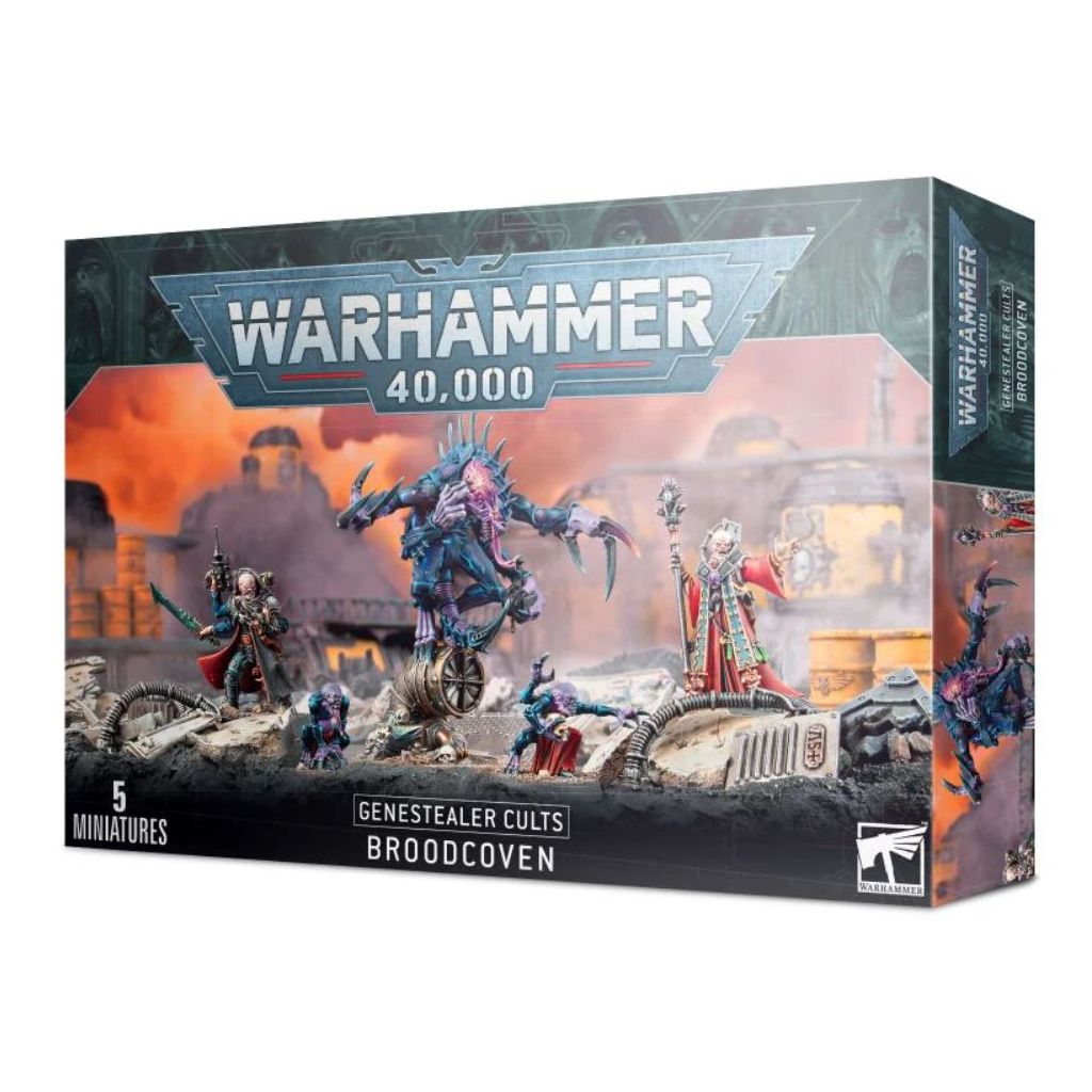 Cette boîte contient tous les composants nécessaires pour assembler le Broodcoven, une formation décrite dans le Codex: Genestealer Cults. Vous recevrez un Patriarch, un Primus armé d'un pistolet à aiguille, d'une épée d'os et d'un injecteur de toxines, ainsi qu'un Magus, armé d'un pistolet mitrailleur et d'un sceptre de force, le tout accompagné de 2 Genestealer Familiars. Un assortiment de figurines des Genestealer Cults charismatiques et mortelles.