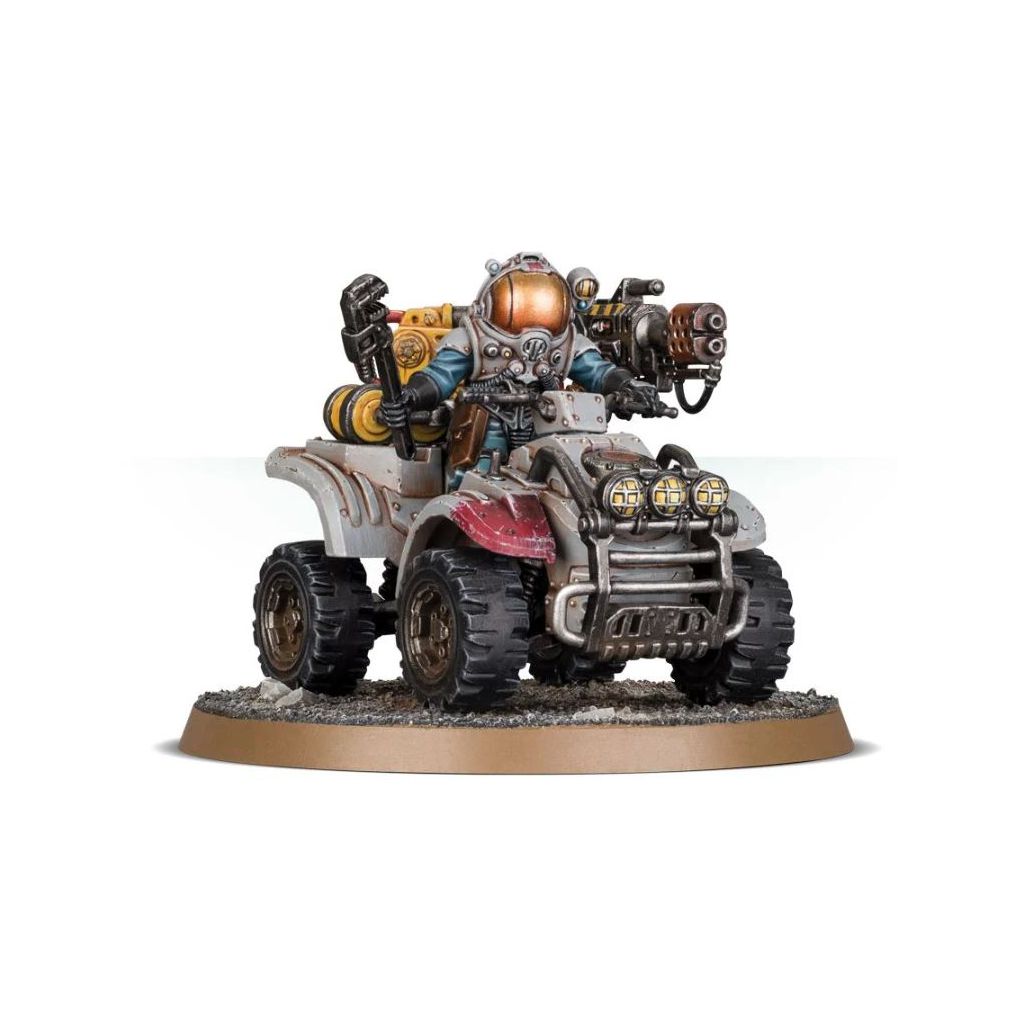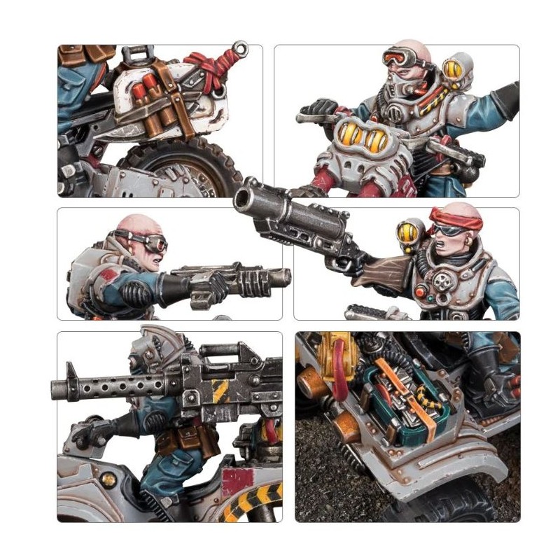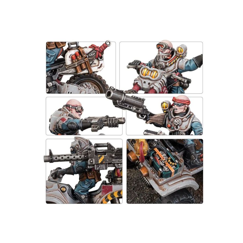 Ce kit vous permet de monter une escouade de 5 Atalan Jackals – quatre sur moto tout-terrain, plus un Atalan Wolfquad. Vous pouvez configurer votre escouade avec tout un éventail d'armes de mêlée, de charges explosives et d'armes de tir, en vue de divers rôles tactiques. De même, le Wolfquad dispose en option d'un laser minier, d'un incinérateur Atalan ou d'une mitrailleuse pour vous donner encore plus de choix. Toutes les armes du kit sont interchangeables, et il y a en outre un assortiment de têtes et d'accessoires pour mieux individualiser vos figurines.
