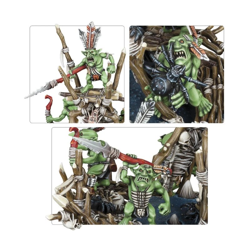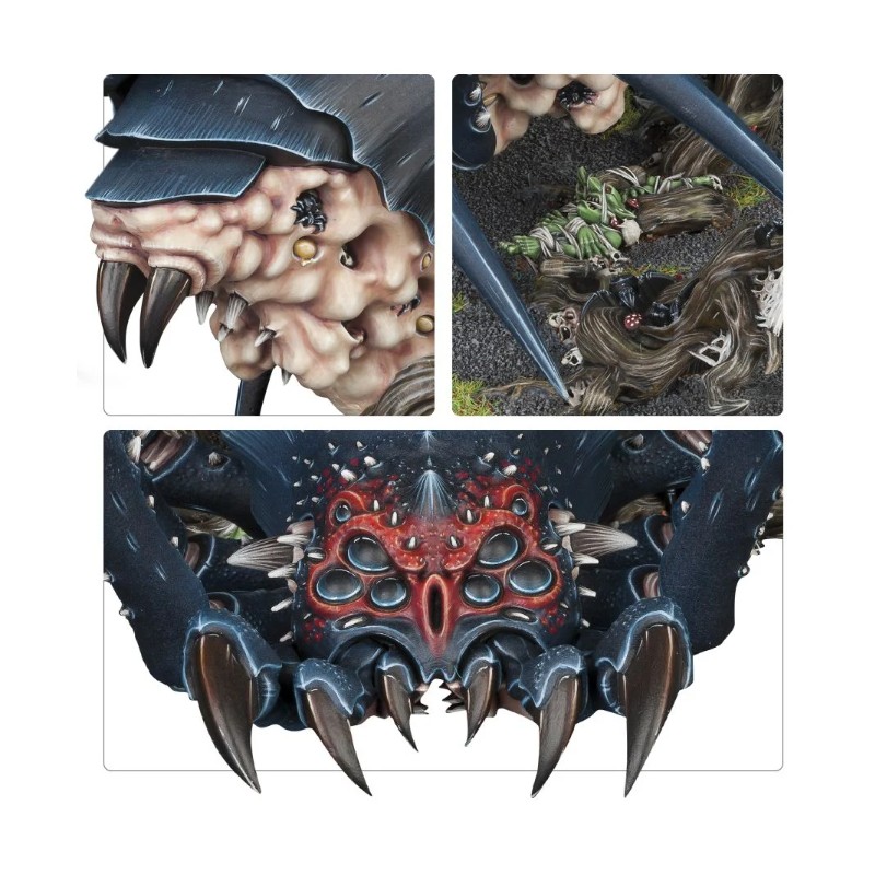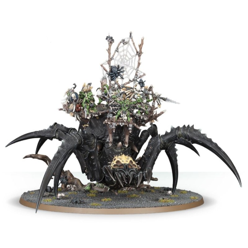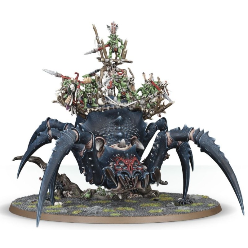 Ce kit plastique en 95 pièces propose l'intégralité des options qui rendront votre Arachnarok Spider vraiment unique, y compris une catatoile et un hamac-à-shaman. Il y a aussi huit Spiderfang Grots embarqués dans le howdah, un Spiderfang Shaman et une foule de petites araignées pour peupler le socle.