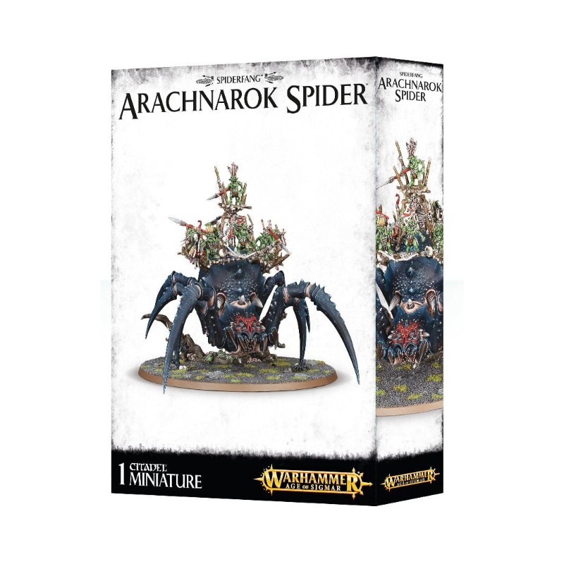 Description du produitLes Arachnarok Spiders sont des monstres colossaux tout en chitine et en crochets dégouttants de venin. Tirées de leur repaire, une fosse pleine d'ossements où s'accumulent les strates d'offrandes des grots, elles ravagent les armées contre lesquelles on les envoie. Leur carapace se rit des lames, des traits et même des balles, et elles plaquent au sol les guerriers de leurs pattes puissantes avant de leur injecter le poison fatal. Sur leur dos, les Arachnaroks portent un howdah rudimentaire où des Spiderfang Grots prennent place. Certains servent une catapulte projetant des toiles peuplées d'araignées, et il arrive que le howdah serve de plate-forme d'où les sorciers déchaînent leur cuisante magie verte.