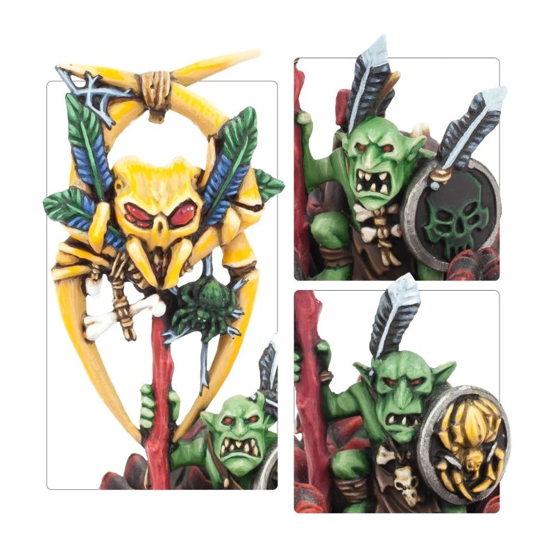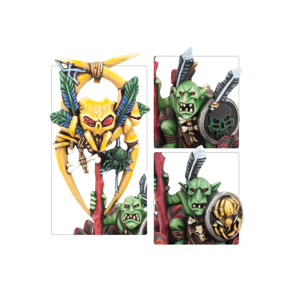 Ce kit plastique contient 10 Grot Spider Riders armés de lances crochues et d'arcs-araignées, et comprend les options pour assembler un Spider Rider Boss, un porte-icône et un tambour d'os.
