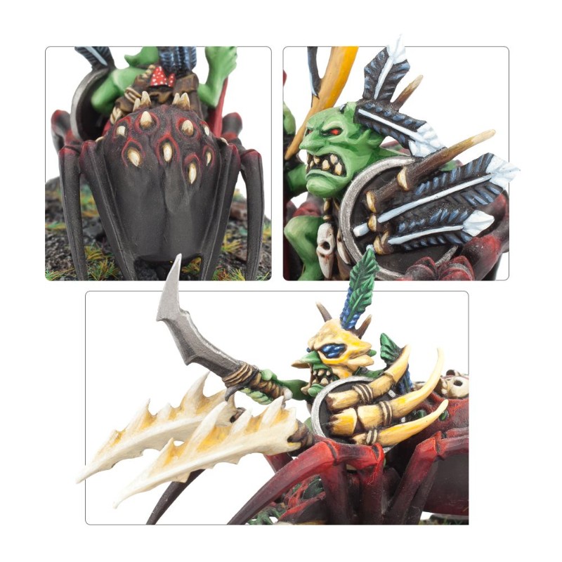 Description du produitSurgis de nulle part grâce à l'agilité de leurs montures capables de grimper aux murs et de se laisser tomber des frondaisons, les Grot Spider Riders au regard fou frappent de leurs lances et tirent des flèches empoisonnées. Que ce soit d'entre les dalles fissurées des cités détruites ou de sous les ruines de fiers bastions, les guerriers grots à dos d'araignée sortent par milliers pour surprendre l'ennemi.