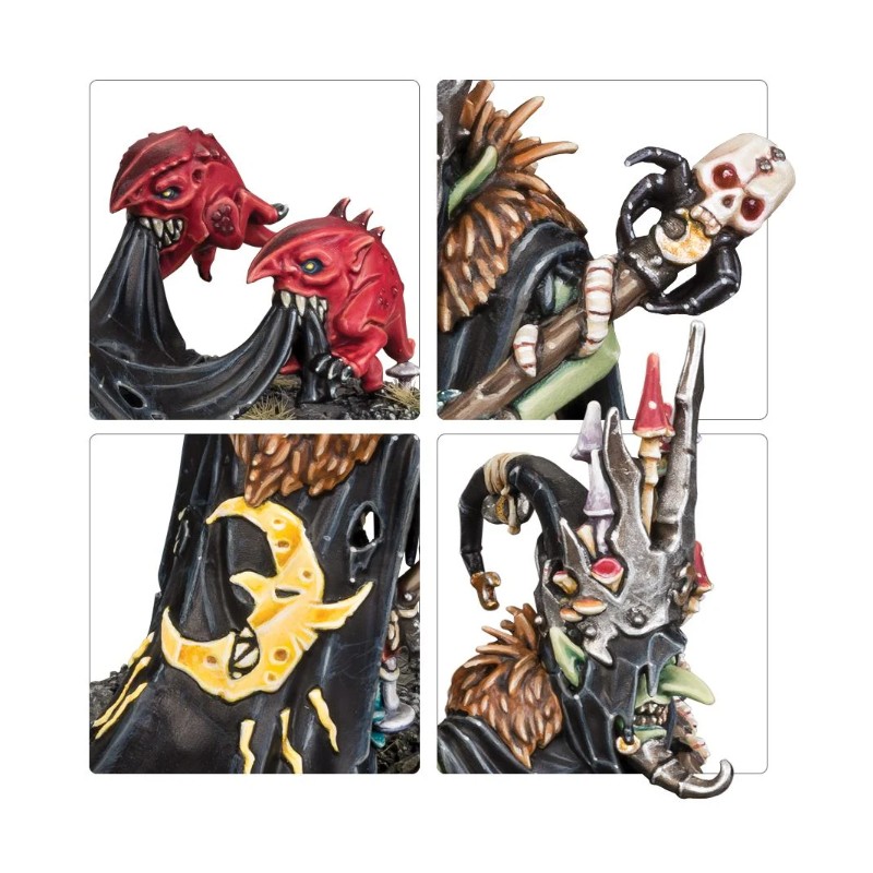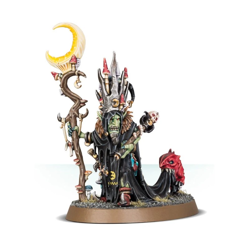 Cette figurine magnifique dépeint le dirigeant dément des Gloomspite Gitz avec un luxe de détails, et il est couvert de gris-gris, de verroterie et de champignons. Vous trouverez cette figurine incroyablement gratifiante à peindre, et elle offre une formidable option pour toute armée de Gloomspite Gitz grâce à ses puissants sorts et à ses aptitudes de commandement.