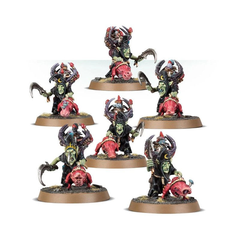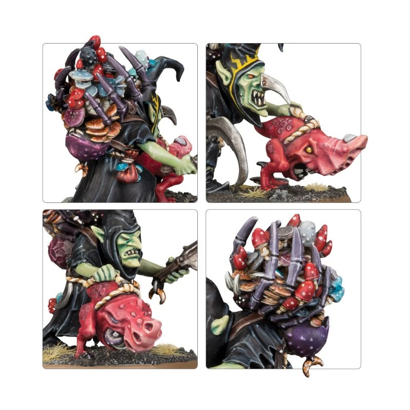 Description du produitTirés par leurs squigs r'nifleurs empressés, les Sneaky Snufflers récoltent les bonnets-de-louf et autres précieux champignons magiques jusque sur le champ de bataille. Ils tailladent quiconque leur fait obstacle, et distribuent aux Grots voisins des psychotropes fongiques juste pour s'amuser.