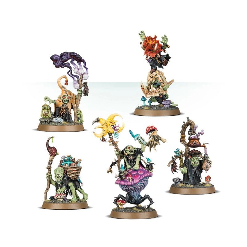 Grâce à ce kit, vous pouvez monter tout un Gobbapalooza – un concile de Grots qui propose à votre armée un large éventail de tours à jouer. Pris ensemble mais déployés séparément, ses membres ont chacun des aptitudes uniques et puissantes. Vous trouverez là cinq héros: