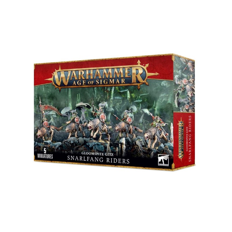 Ce kit plastique permet d'assembler cinq Chevaucheurs de Grognecrocs, des bêtes féroces montées par des petits cavaliers grots. Chaque Chevaucheur de Grognecrocs peut être assemblé avec un arc grot pointé vers l'ennemi ou un kitrou pour transpercer sa proie, son autre arme étant accrochée dans son dos. Le kit contient les éléments nécessaires pour assembler des Chevaucheurs comme un champion Vilboss armé d'un cimeterre, un musicien Sonneur de Cor et un Porteur de Vildrapeau. Il propose également tout un tas d'éléments interchangeables vous permettant d'intervertir boucliers, têtes et cimiers en queue de loup. Ces grots des Vilebandes se démarquent parmi les Vils du Fielobscur, ce qui en fait une unité amusante à assembler et à peindre et qui ajoute de la variété à votre horde de grots.