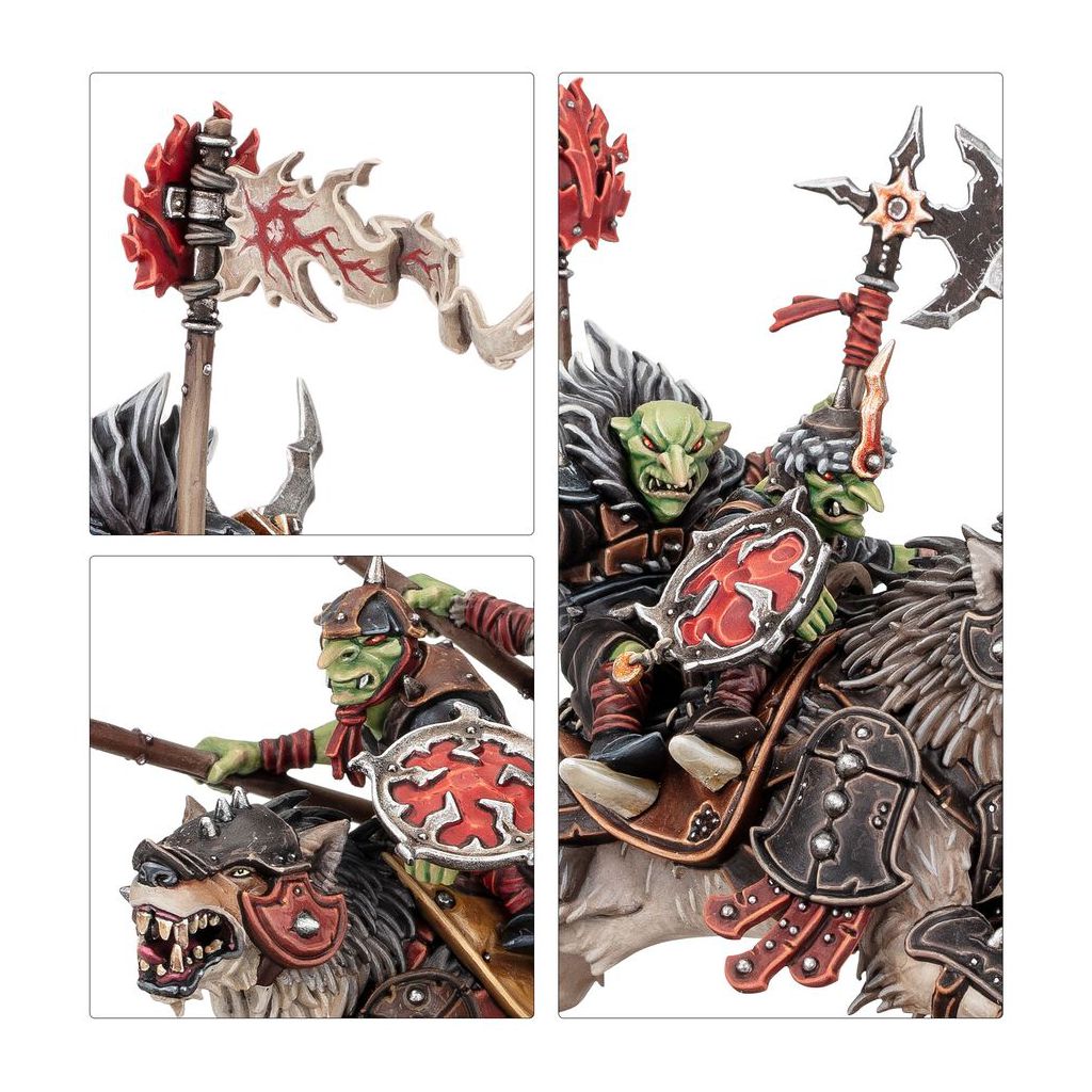 Ce kit en plastique permet d'assembler trois figurines de Cavalerie Grognemeute, une unité rapide et redoutable pour vos armées de Vils du Fielobscur à Warhammer Age of Sigmar. Elle ouvre énormément d'options tactiques aux Grogneboss astucieux – sa vitesse lui permettra d'arriver là où l'ennemi s'y attend le moins, et ses loups se feront un plaisir de se repaître des petites unités tenant des objectifs, ou d'ennemis déjà blessés.