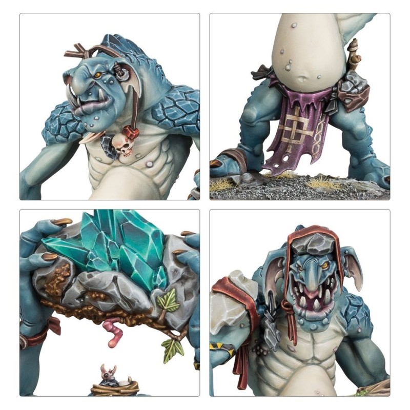 Les figurines de ce kit sont faciles à personnaliser. Le Troggoth des Moit'gîtes peut autrement être assemblé en Troggboss des Moit'gîtes disposant d'un choix de deux têtes et de deux sommets de massue. Quelle que soit la version que vous choisissez, vous pouvez décorer son socle avec des éléments esthétiques optionnels, comme des rochers et des champignons.