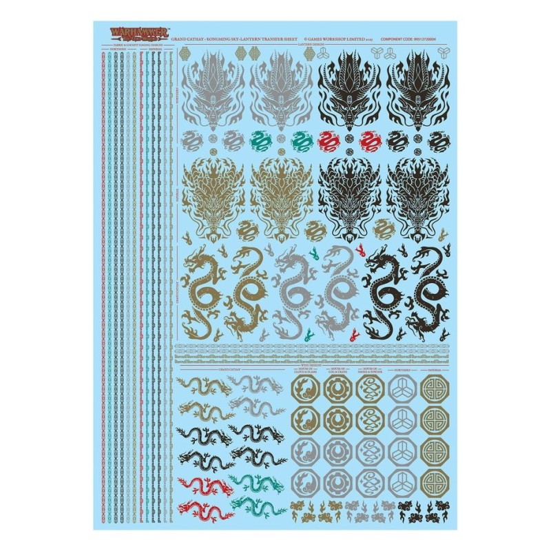 Ce kit est composé de 128 éléments en plastique, de 1x Socle Carré Citadel de 100mm, de 1x Socle Carré Citadel de 25mm, de 1x Grande Tige de Vol Citadel et de 1x Planche de Décalcos de Lanterne Céleste proposant x115 Décalcos de qualité afin de décorer vos figurines.
