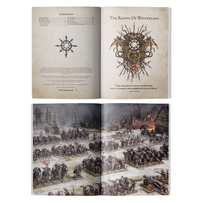 – Westerland en Flammes : Un récit de l'invasion de Westerland par Frydaal la Chaînière, une exploration des nombreuses Tribus de Maraudeurs qui combattent à ses côtés, et des champions qui les dirigent.