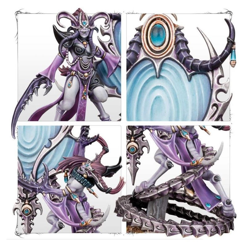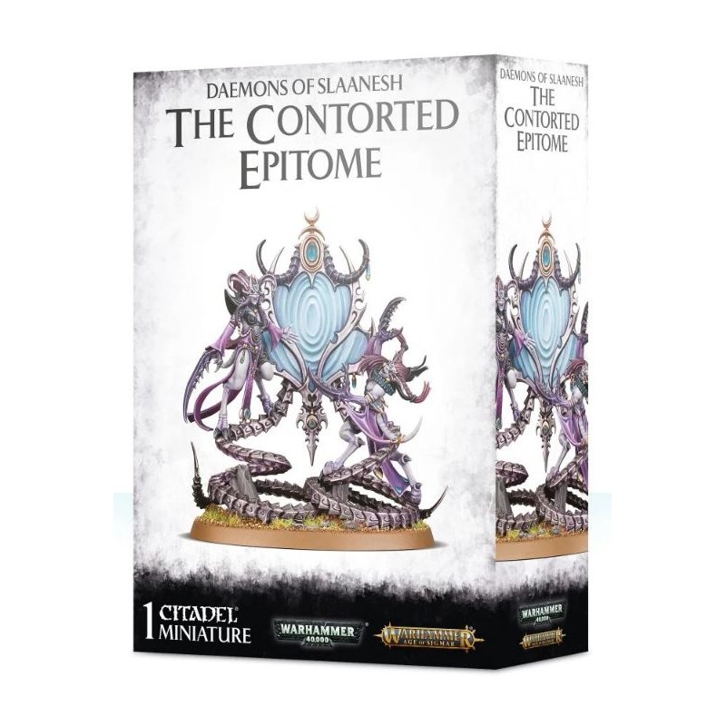 Le Contorted Epitome est un jeteur de sorts de Slaanesh synonyme de mort pour tout ennemi susceptible de s'aventurer trop près! Fauchant l'ennemi avec ses sorts à Warhammer Age of Sigmar et ses pouvoirs psychiques à Warhammer 40,000, ce miroir magique est doué de nombreux tours pendables, comme d'annuler les pires attaques de l'adversaire ou d'hypnotiser les unités à proximité.