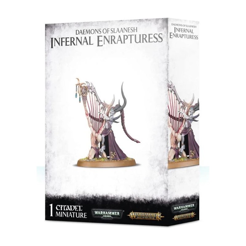 L'Infernal Enrapturess est un personnage de soutien crucial pour toute armée de Slaanesh. Si elle est capable de déchiqueter ses ennemis de loin avec ses attaques soniques, sa véritable force repose dans ses aptitudes utilitaires, que ce soit à Warhammer 40,000 ou à Warhammer Age of Sigmar. Les démons de Slaanesh s'en trouvent plus faciles à invoquer, alors que les psykers et sorciers adverses courent un grave péril à utiliser leurs pouvoirs et leurs sorts.