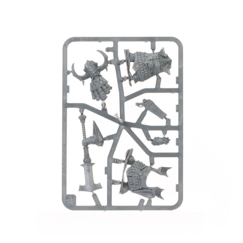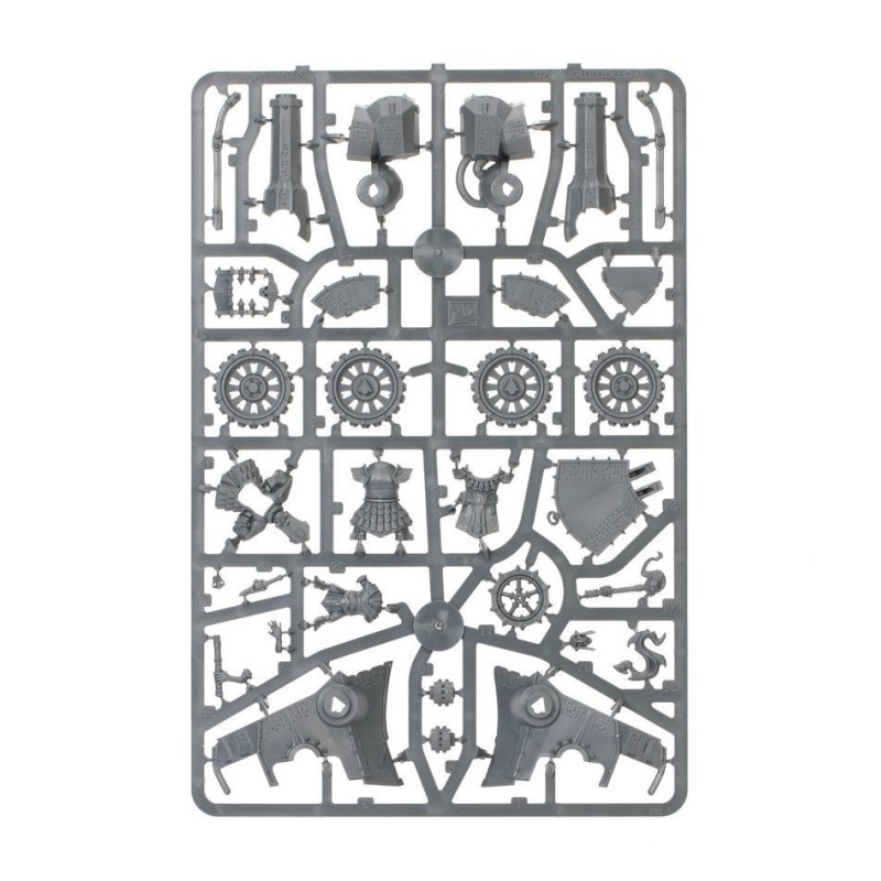 Description du produitLes Osts Ruineforgés incarnent parfaitement la philosophie martiale des serviteurs de Hashut, à savoir que la guerre et la conquête ne sont que des histoires de calculs. Les maîtres des ziggourats font en effet toujours en sorte de remplir les caisses de leur royaume, et tout ce qu'ils entreprennent a pour objectif leur enrichissement personnel. C'est à cette fin qu'ils déploient souvent de petites forces pour revendiquer des ressources particulières ou pour punir l'ennemi de leur choix.