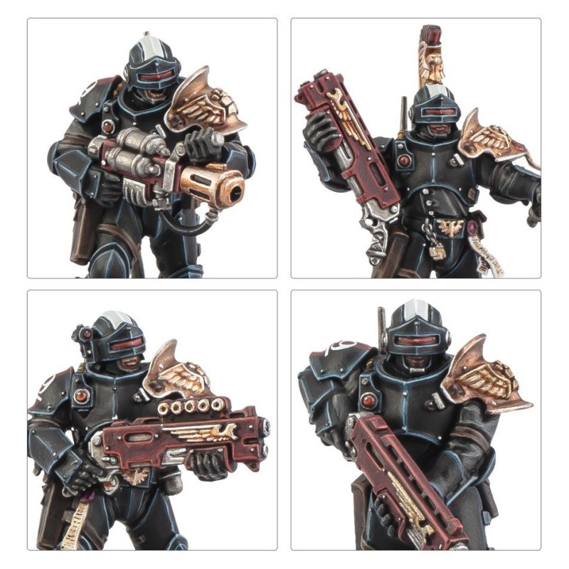 Cette boîte vous permet de faire des économies par rapport à un achat des kits au détail, ce qui en fait une excellente manière d’entamer votre armée ou d’étoffer une collection existante. Ces figurines peuvent également être utilisées comme une force d’Agents de l’Imperium complète dans les parties de Warhammer 40,000 au format Patrouille; les règles de cette Patrouille sont disponibles en téléchargement gratuit sur le site de Warhammer Community.