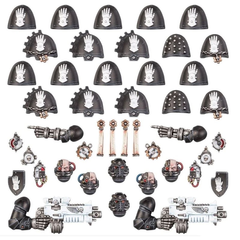 – 5 épaulières Iron Hands pour armure énergétique Mk X (prévues pour des Hellblasters/Intercessors)