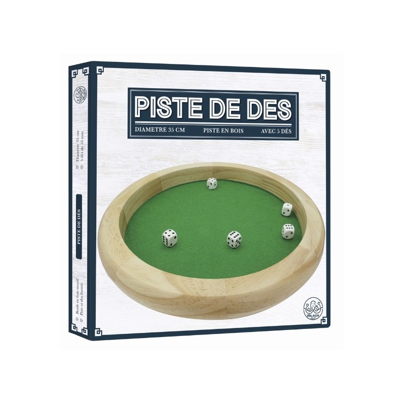 Qualité et conception Cette piste est fabriquée en bois massif, avec une finition soignée et un revêtement en feutrine sur le dessus comme en dessous, ce qui permet aux dés de glisser en douceur et sans bruit.