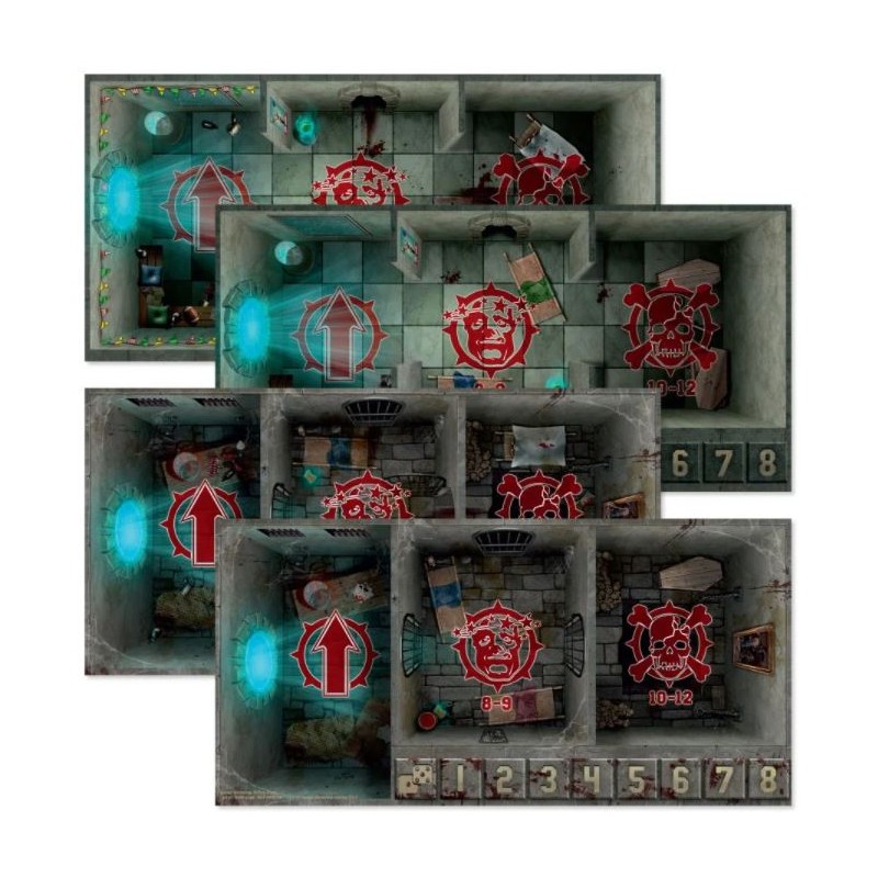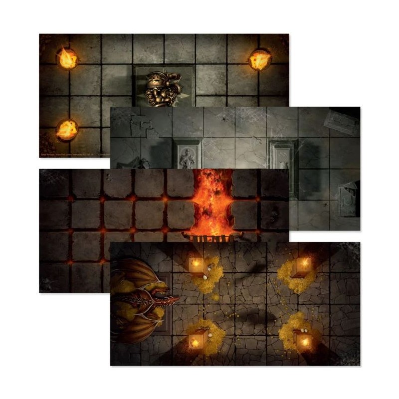 - 16x tuiles de donjon magnifiques et sinistres que vous utiliserez pour organiser votre donjon