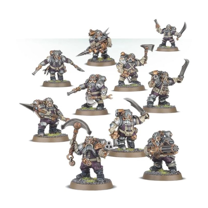 Description du produitQuand il faut assurer une présence sur le terrain, les Arkanaut Companies servent de forces principales aux Kharadron Overlords. Descendant de sa Frigate au moyen d'une échelle gravitique ou de cordages, une Arkanaut Company se déploie sans délai dans la mêlée.