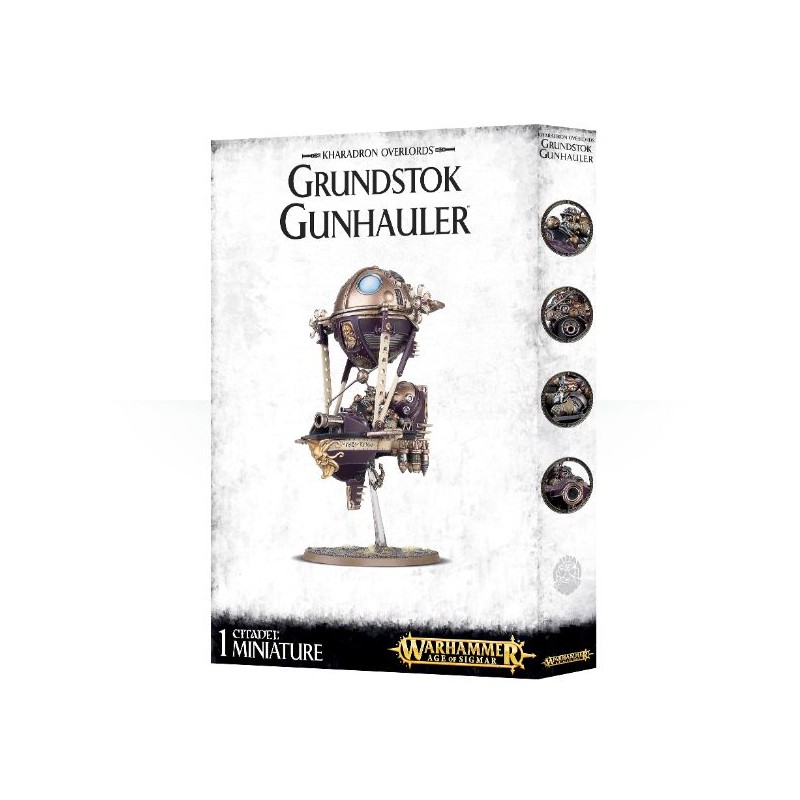Ce kit plastique contient les pièces nécessaires pour assembler un Grundstok Gunhauler. Petit et agile, il peut être armé principalement d'un stratocanon ou d'un canon foreur. L'équipage du Gunhauler comprend deux Duardins, un pilote devant son tableau de bord aux instruments énigmatiques, et un artilleur qui sert la carabine à munitions éthériques, les charges à fragmentation, les forets à détonation et les valves d'ancrage qui servent à dissuader l'ennemi de trop s'approcher du reste de la flotte.