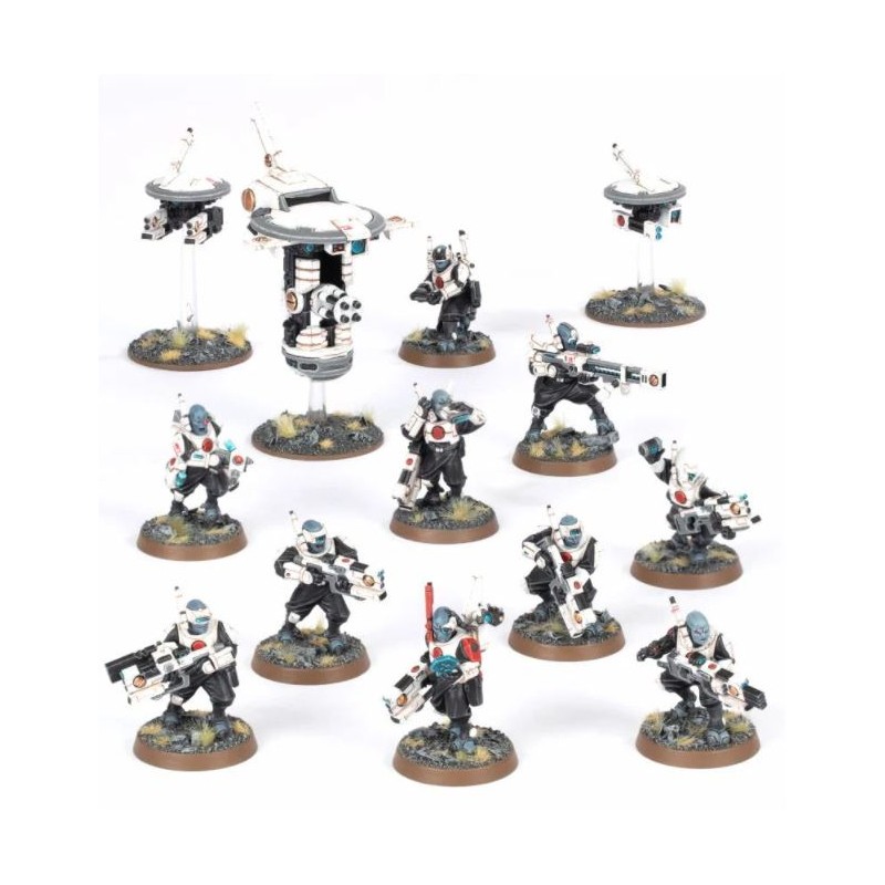 - Une unité de reconnaissance avancée équipée pour les opérations clandestines, pour vos armées de l'Empire T’au, doublée d'une kill team complète, en un seul kit