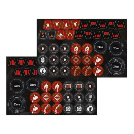 Dans la boîte, vous trouverez également une planche de 39 pions double face des Sanctificateurs, afin de garder facilement un œil sur votre équipement et les effets en cours dans le feu de la bataille.