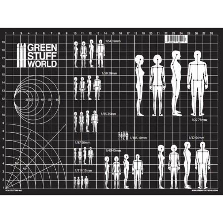 D'un côté du tapis sont imprimées les lignes directrices des échelles les plus courantes, ce qui vous permet de créer des armatures pour sculpter des miniatures