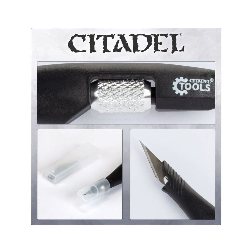 Description du produitTout adepte du hobby Warhammer a besoin d'un couteau de modélisme. L'équipe de conception de Citadel Tools en a donc créé un juste pour eux. Il dispose d'une poignée en plastique dur sculptée et comprend plusieurs fonctions de sécurité et de praticité :