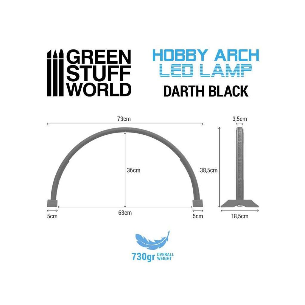 Lampe à Led de couleur noire foncée avec forme d'arc pour peindre et photographier sans ombres.