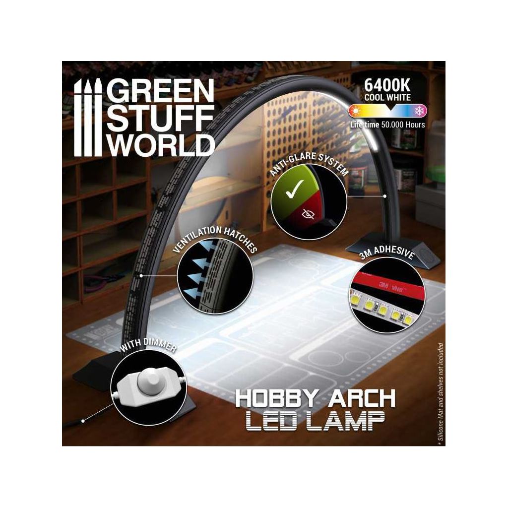 Il se distingue par sa conception moderne de refroidissement vertical qui permet de longues sessions de peinture et de modelage, son système anti-éblouissement latéral, son régulateur d'intensité lumineuse, ainsi que la possibilité de fixer plusieurs supports de caméra streamer spécialement adaptés pour pouvoir vous enregistrer pendant que vous travaillez. Les supports sont également disponibles dans notre catalogue.
