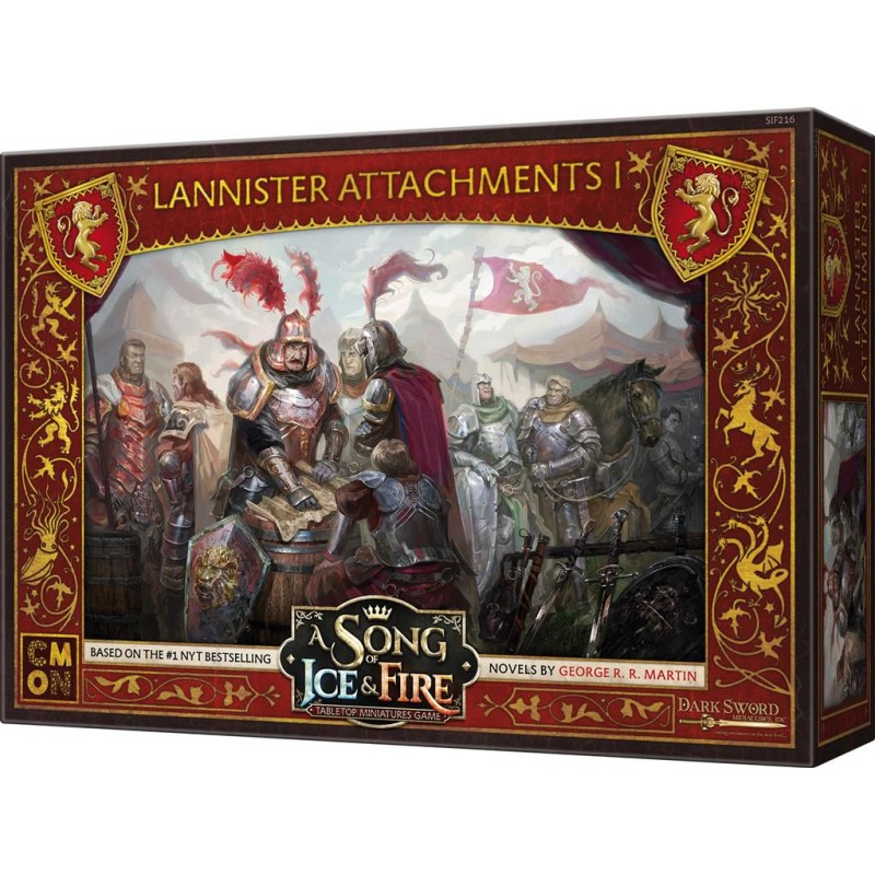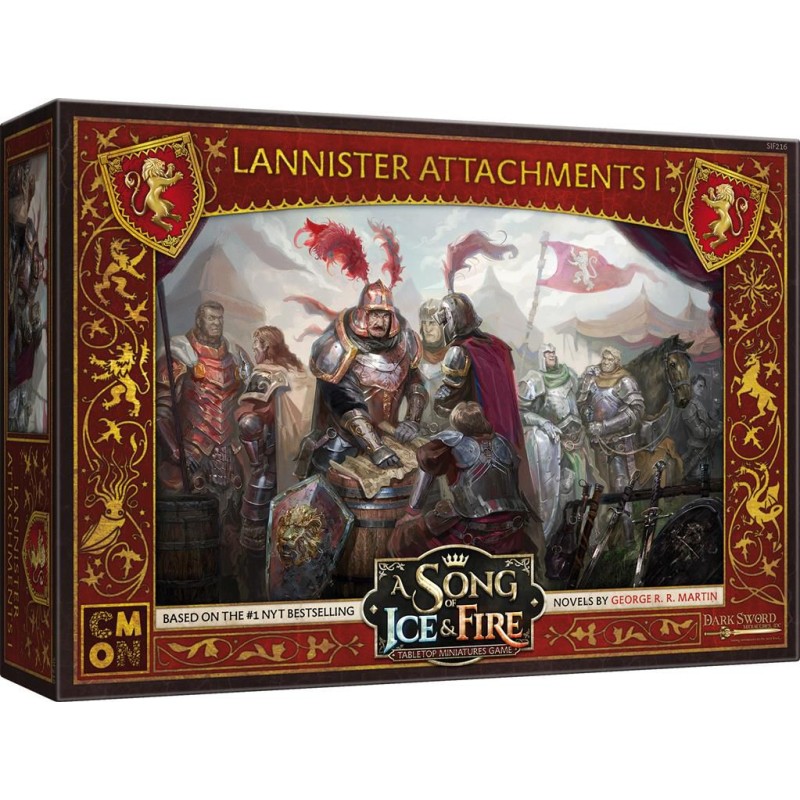 La boîte Attachements Lannister 1 pour le Trône de Fer : le jeu de figurines apporte aux joueurs de la maison Lannister 11 nouvelles figurines qu'ils peuvent utiliser pour augmenter et personnaliser leur collection actuelle. Des capitaines de garde aux vétérans d'assaut en passant par le boucher de Clegane, ces nouveaux attachements apporteront de nombreux nouveaux outils au répertoire des Lannister.