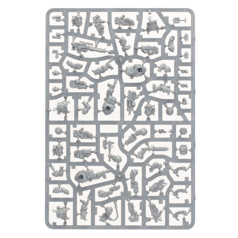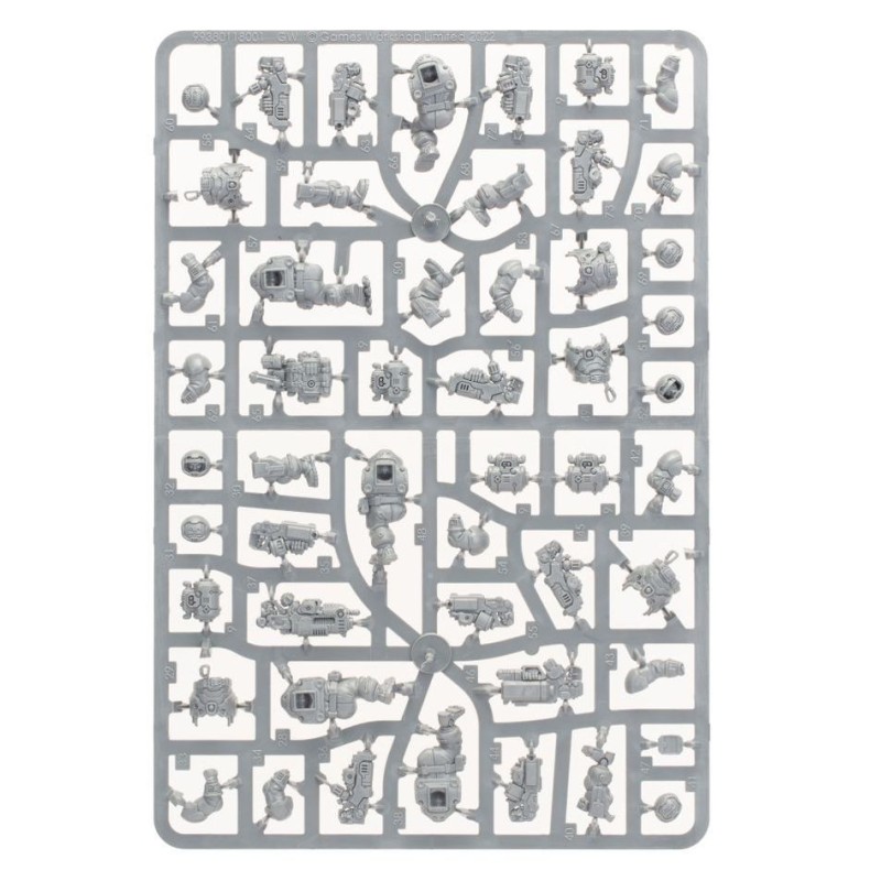 Ce kit est composé de 382 éléments en plastique, de 4x Socles Ronds Citadel de 40mm, de 5x Socles Ronds Citadel de 32mm, de 10x Socles Ronds Citadel de 28,5mm et de 2x Planches de Décalcos des Ligues de Votann, chacune proposant 555 décalcos de grande qualité pour décorer vos figurines.