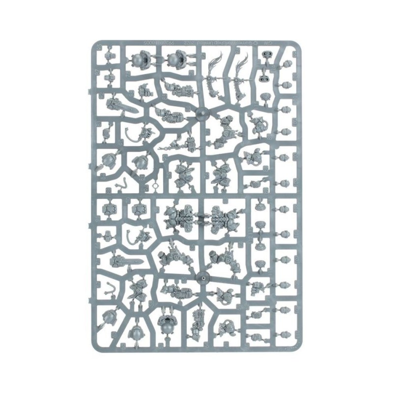 Si vous voulez entériner vos conquêtes au nom des Ancêtres, cette boîte est le moyen parfait d'entamer une nouvelle collection des Ligues de Votann ou d'agrandir une armée existante tout en faisant des économies par rapport à un achat des kits au détail. La force est menée par Vynn le Tueur de Fléau, un puissant héros équipé d'un épais exoscaphandre et accompagné par une garde personnelle d'Âtregardes Einhyr. Une unité de Tonnekogs Brôkhyr fournit un soutien à longue portée tandis que des Guerriers Âtrekogs s'emparent des objectifs clés. Ces 19 figurines en plastique représentent une force complète du Rempart du Tueur de Fléau utilisable dans des parties réduites et tactiques au format Patrouille de Warhammer 40,000. Les règles permettant d'utiliser cette Patrouille sont disponibles en téléchargement gratuit sur le site de Warhammer Community.