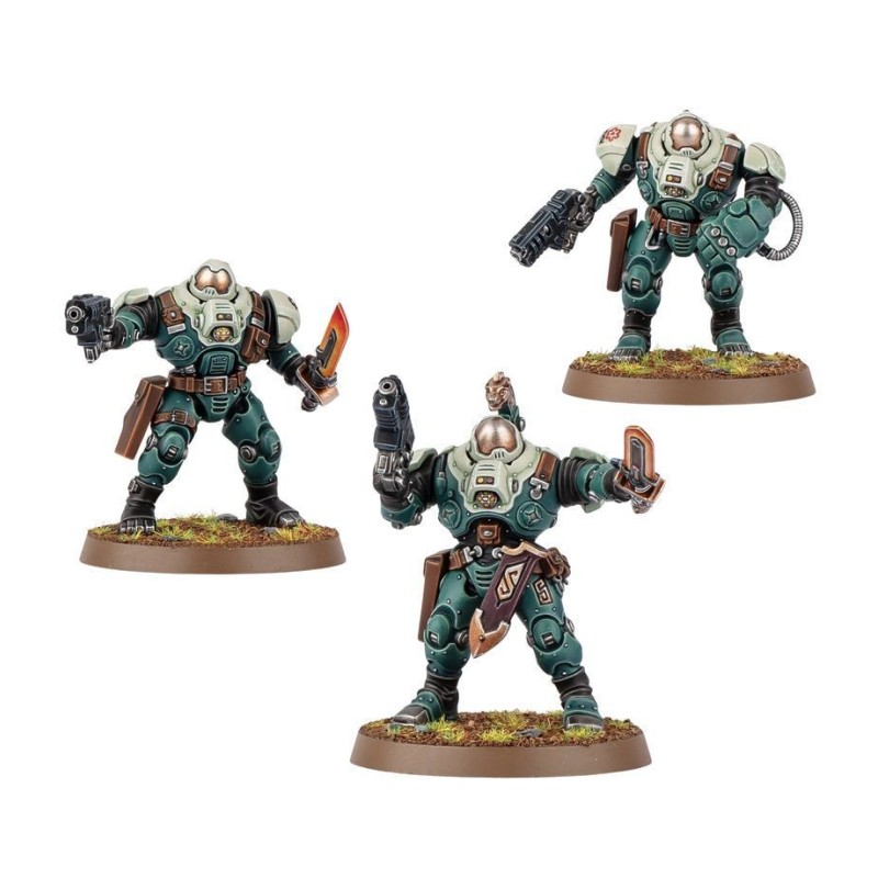 Chaque Chaudronnier Cognat de Fer peut être armé de désintégrateurs volkanites lourds pour éliminer les cibles à distance, ou d'un bolter modèle Autoch et soit d'une épée à plasma, soit d'un gantelet à percussion pour massacrer les ennemis en mêlée. Vous trouverez également les éléments nécessaires pour assembler deux champions d'unité optionnels.