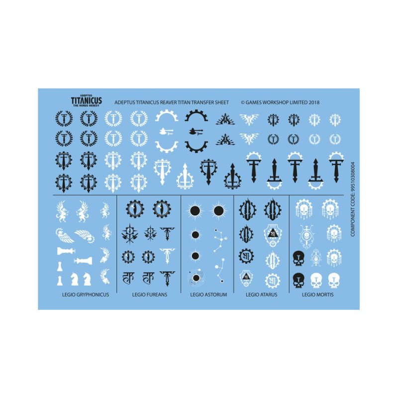 - 1x Planche de Décalcos de Titan Reaver Adeptus Titanicus