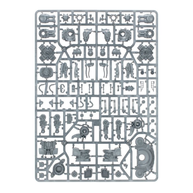 Ce kit propose de nombreux détails et offre de nombreuses manières de personnaliser votre Titan. Vous trouverez des boucliers héraldiques et différents styles de plaques de blindage sculptées de motifs. Le kit présente des articulations à différents endroits, ce qui vous permet de choisir la position de votre Titan au niveau de la tête, des genoux, de la taille et bien plus. Ses batteries de défense et son arme de carapace sont également ajustables, ce qui signifie que vous pouvez les faire viser là où vous voulez, voire les assembler sans colle pour les repositionner en cours de partie.